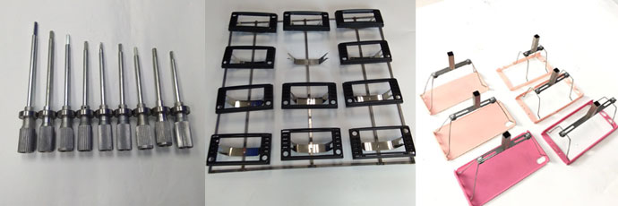 東莞市創(chuàng)屹金屬制品有限公司業(yè)設計生產銷售 掛具、夾具、治具、網盤、網籃,以及配件彈片、彈簧線、方管、掛架、治具上桿、插銷等五金制品的廠家。廣泛應用于國內外噴涂、噴油、噴漆、UV、水轉印、電鍍、電子、五金、塑膠等行業(yè)。